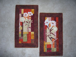 ![]() PeacockDesign was taken from an old painting underglass. (Sous - Verre picture). Hand made and hand quilted. 2009. (24,5"x27") | ![]() Swirl Tree Abstract HousesInspired by the picture of Karla Gerard, a folk Art/Abstract Painter. Hand made and hand quilted. 2016. (20"x16") | ![]() Houses and TreesInspired by the picture of Karla Gerard, a folk Art/Abstract Painter. Hand made and hand quilted. 2016. (20"x16") |